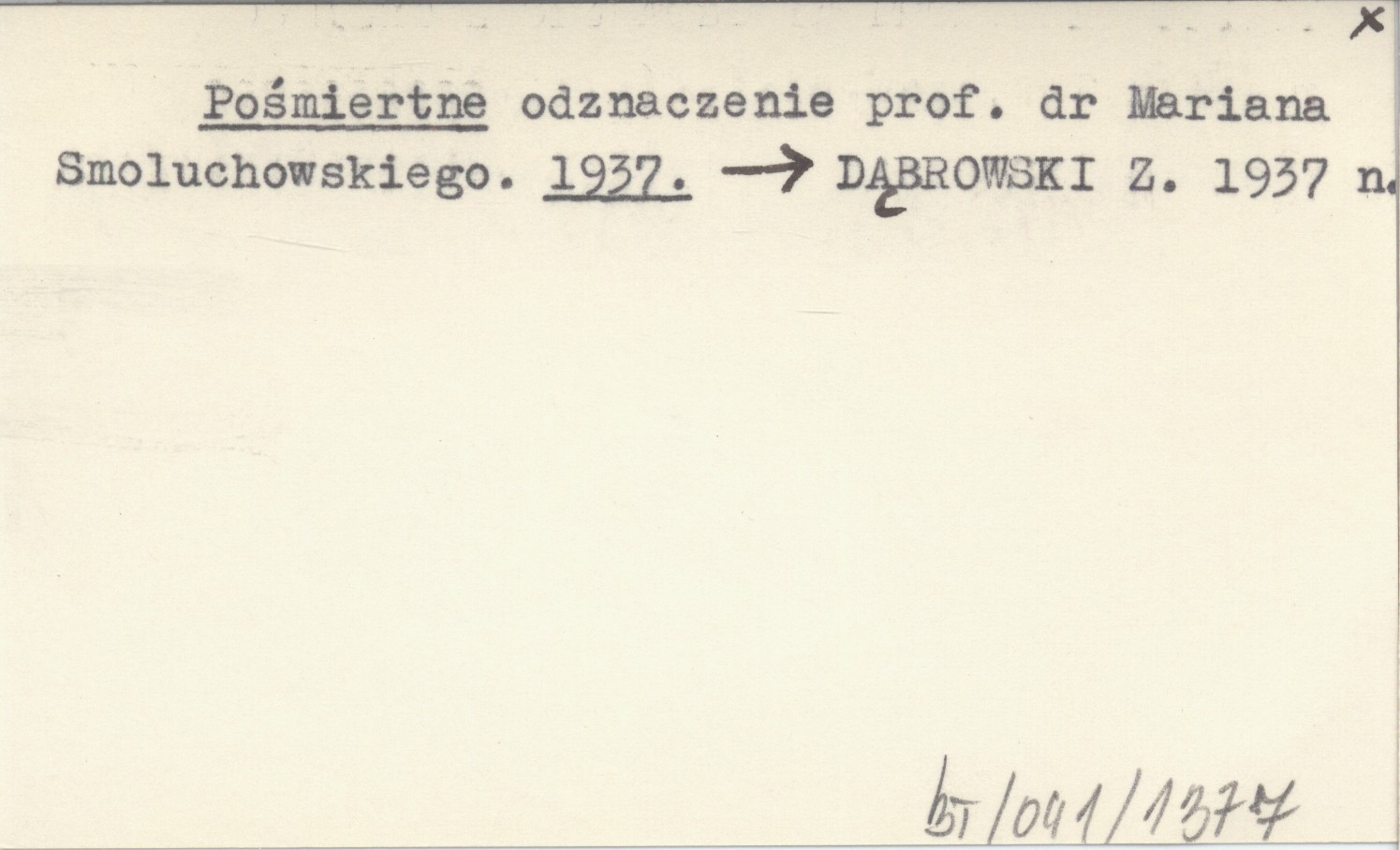 Pośmiertne odznaczenie prof. dr Mariana Smoluchowskiego. 1937