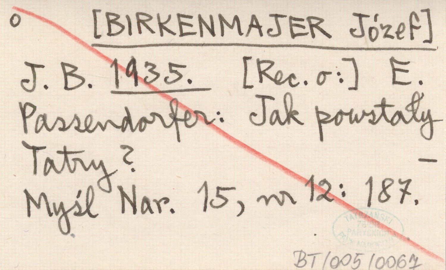 J. B. [BIRKENMAJER Józef] 1935 E. Passendorfer: Jak powstały Tatry?
