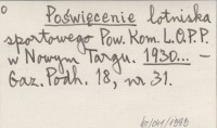 Poświęcenie lotniska sportowego Pow. Kom. L.O.P.P. w Nowym Targu. 1930...