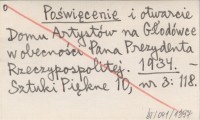Poświęcenie i otwarcie Domu Artystów na Głodówce w obecności Pana Prezydenta Rzeczypospolitej. 1934