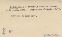 Poświęcenie i otwarcie kolejki linowej w Tatrach. 1936