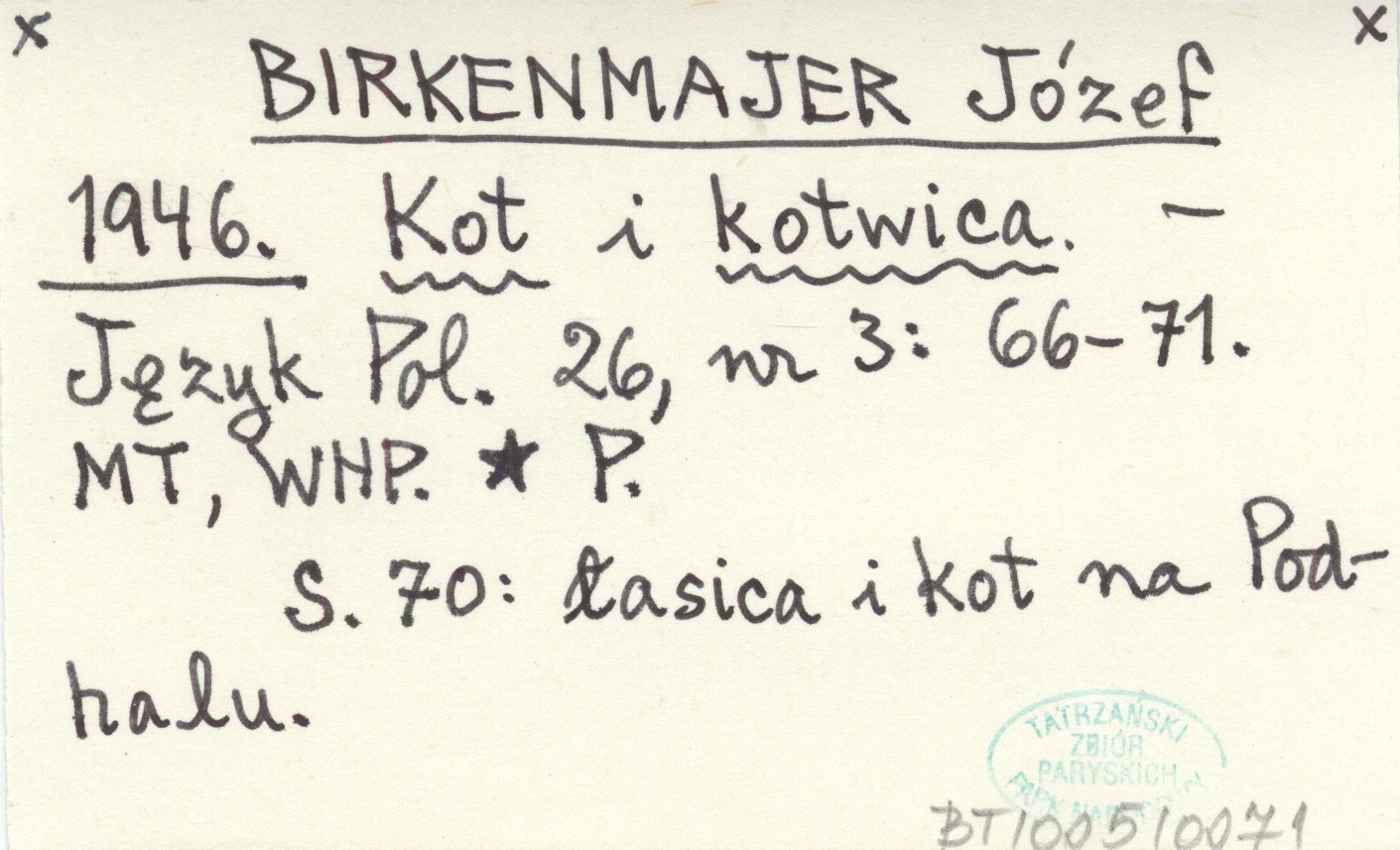 Język Polski, 26, nr 3: 66-71. S. 70: łasica i kot na Podhalu.
