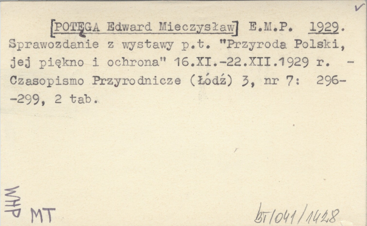 E. M. P. [POTĘGA Edward Mieczysław] 1929 Sprawozdanie z wystawy p.t. "Przyroda Polski, jej piękno i ochrona" 16 XI-22 XII 1929 r.