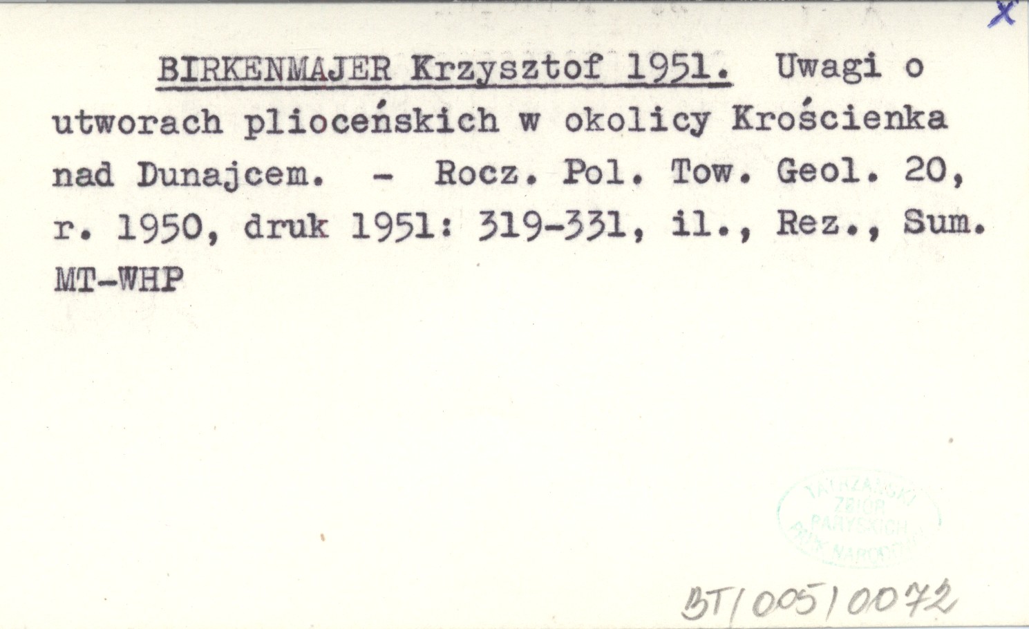 BIRKENMAJER Krzysztof 1951 Uwagi o utworach plioceńskich w okolicy Krościenka nad Dunajcem.
