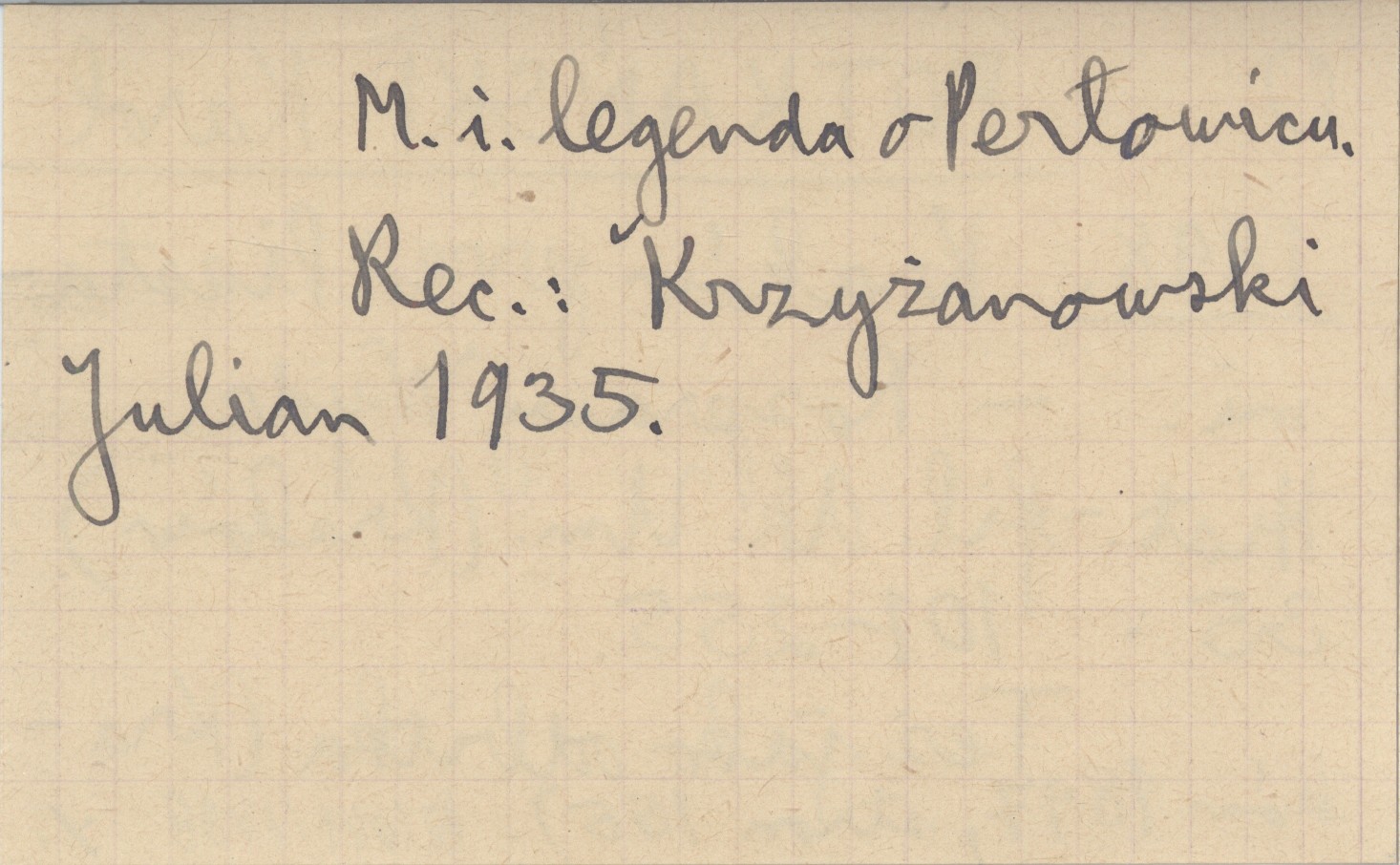 Rozprawy Wydziału Historyczno-Filologicznego Akademii Umiejętności (Kraków) , 35: 101-255. M. in. legenda o Perłowicu. Też jako odbitka (Kraków 1897, 155 s.) REC: KRZYŻANOWSKI Julian 1935