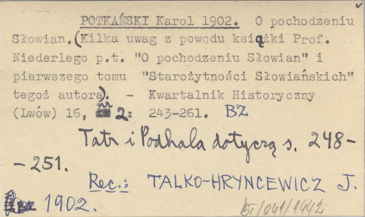 POTKAŃSKI Karol 1902 O pochodzeniu Słowian. (Kilka uwag z powodu książki Prof. Niederlego p.t. "O pochodzeniu Słowian" i pierwszego tomu "Starożytności Słowiańskich" tegoż autora).