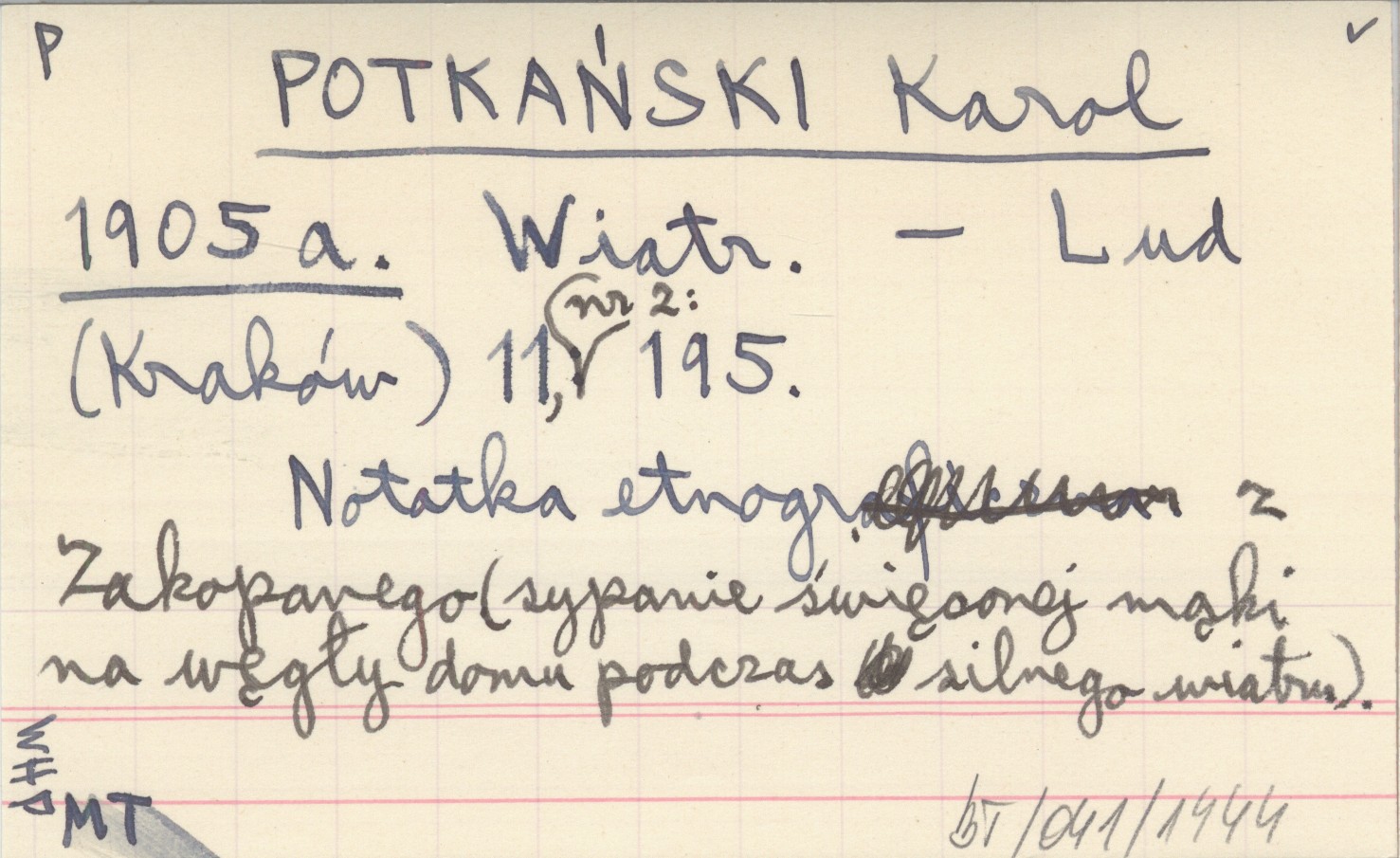 Lud (Kraków) , 11, nr 2: 195. Notatka etnograficzna z Zakopanego (sypanie święconej mąki na węgły domu podczas silnego wiatru).