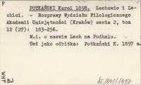 POTKAŃSKI Karol 1902 O pochodzeniu Słowian. (Kilka uwag z powodu książki Prof. Niederlego p.t. "O pochodzeniu Słowian" i pierwszego tomu "Starożytności Słowiańskich" tegoż autora).