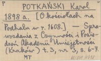 POTKAŃSKI Karol 1898 a [O kościołach na Podhalu w r. 1608.]