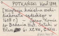 POTKAŃSKI Karol 1899 [Wizytacja kościelna archidiakonatu sądeckiego w 1608 r.]