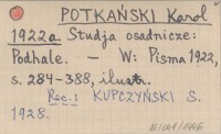 POTKAŃSKI Karol 1922 a Studja osadnicze: Podhale.