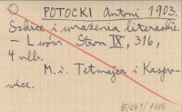 POTOCKI Antoni 1903 Szkice i wrażenia literackie.