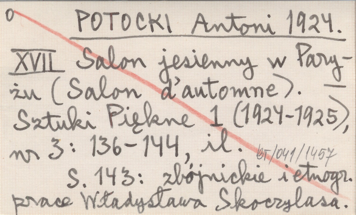 POTOCKI Antoni 1924 XVII Salon jesienny w Paryżu (Salon d'automne).