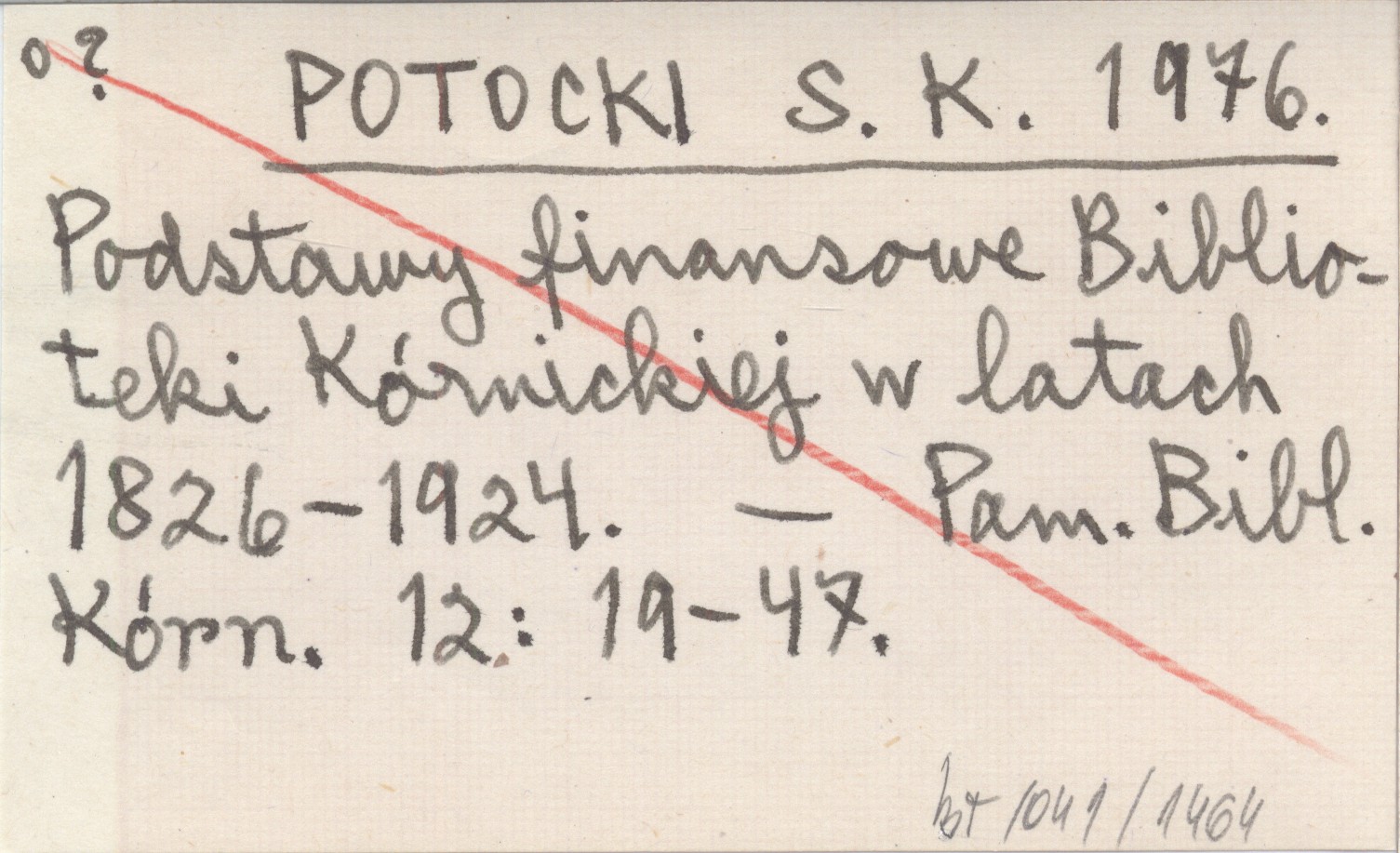 POTOCKI S. K. 1976 Podstawy finansowe Biblioteki Kórnickiej w latach 1826-1924.