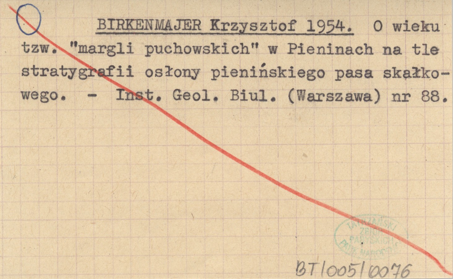 BIRKENMAJER Krzysztof 1954 O wieku tzw. "margli puchowskich" w Pieninach na tle stratygrafii osłony pienińskiego pasa skałkowego.
