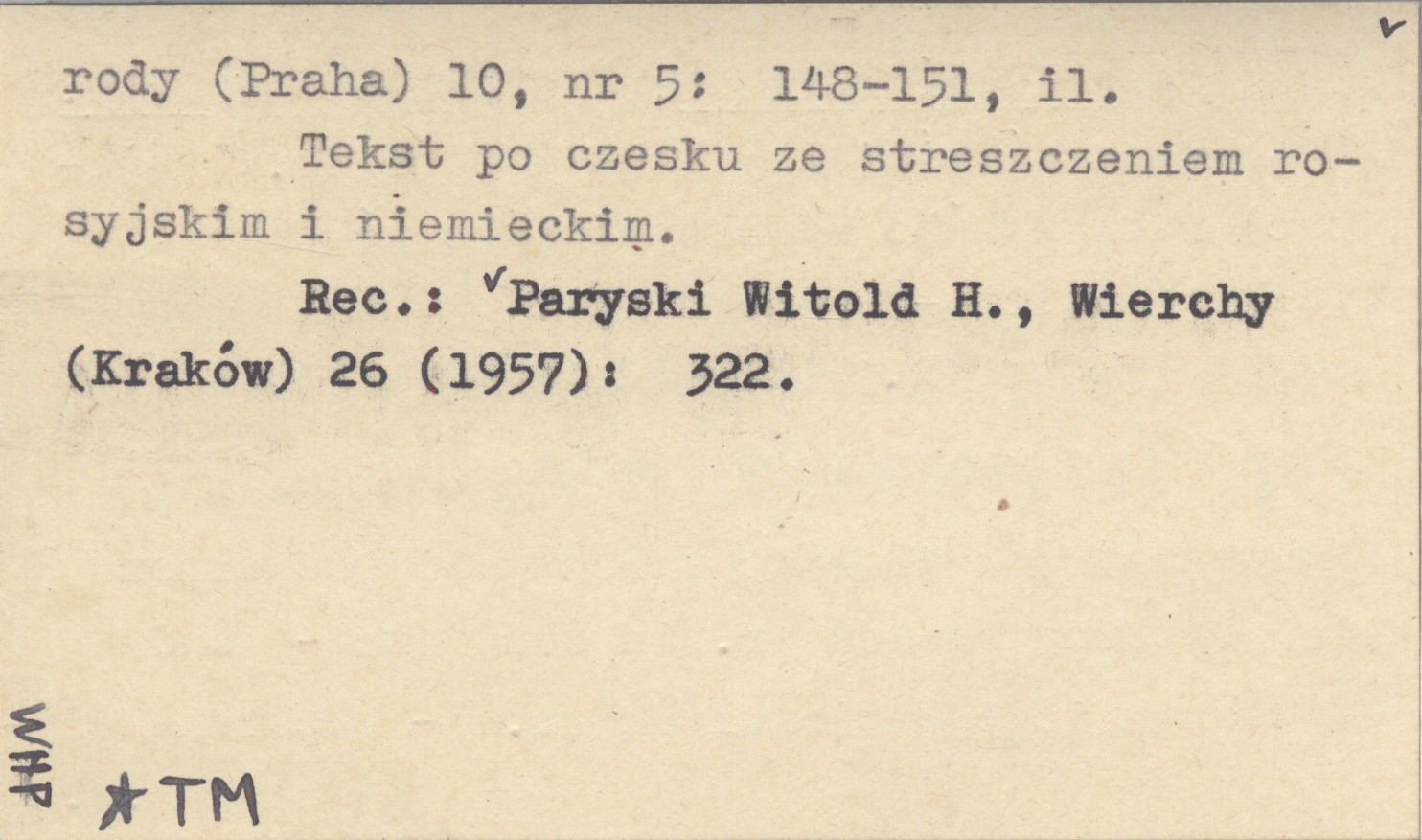 Ochrana Přírody (Praha) , 10, nr 5: 148-151, il. Tekst po czesku ze streszczeniem rosyjskim i niemieckim. REC: PARYSKI Witold H., Wierchy (Kraków) 26 (1957): 322.