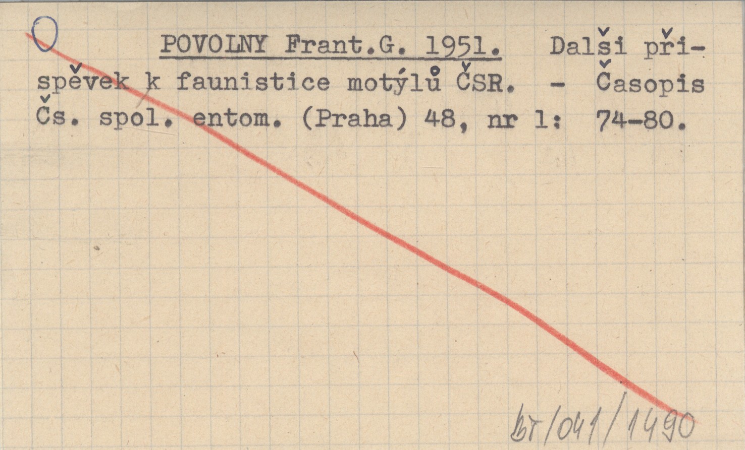 POVOLNY Frant. G. 1951 Dalši přispěvek k faunistice motýlů ČSR.