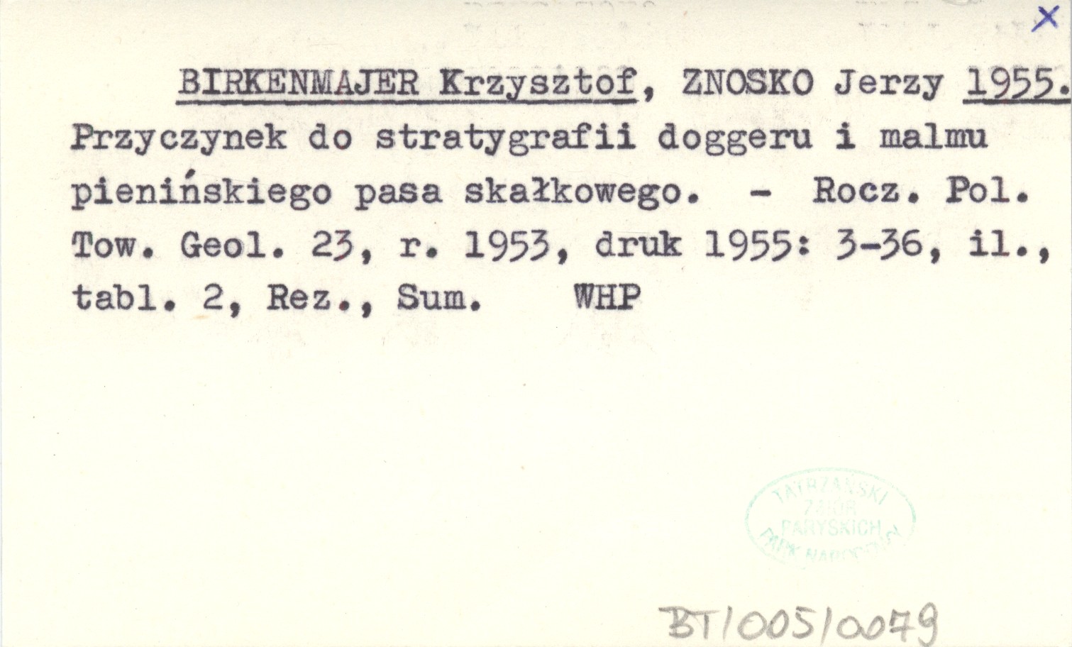 BIRKENMAJER Krzysztof ZNOSKO, Jerzy. ; 1955 Przyczynek do stratygrafii doggeru i malmu pienińskiego pasa skałkowego.