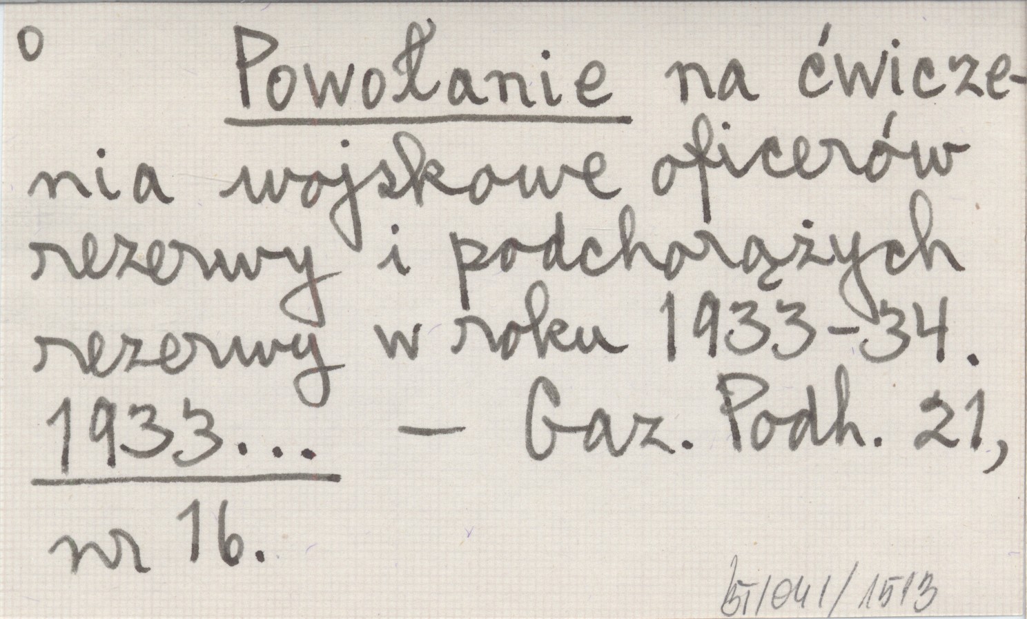 Powołanie na ćwiczenia wojskowe oficerów rezerwy i podchorążych rezerwy w roku 1933-34. 1933...