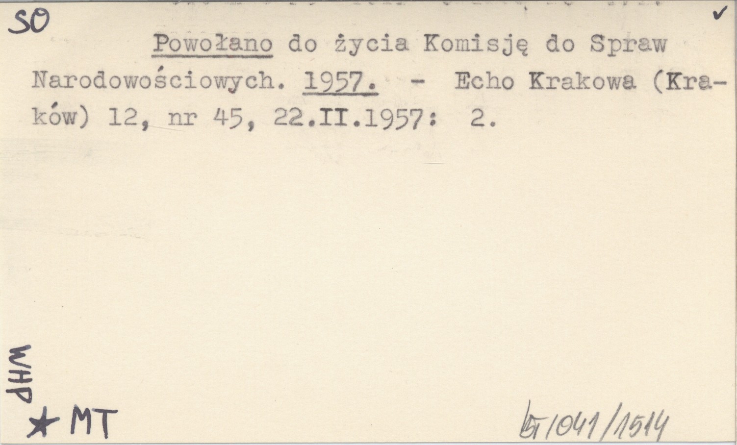 Powołano do życia Komisję do Spraw Narodowościowych. 1957