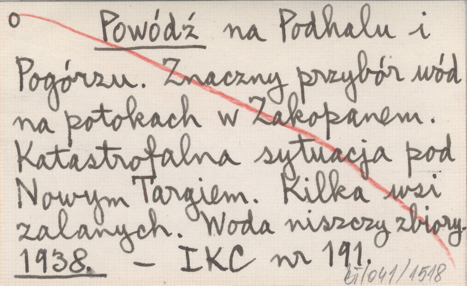 Powódź na Podhalu i Pogórzu. Znaczny przybór wód na potokach w Zakopanem. Katastrofalna sytuacja pod Nowym Targiem. Kilka wsi zalanych. Woda niszczy zbiory. 1938