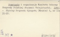 Powstanie i organizacja Komitetu Ochrony Przyrody Polskiej Akademii Umiejętności. 1949