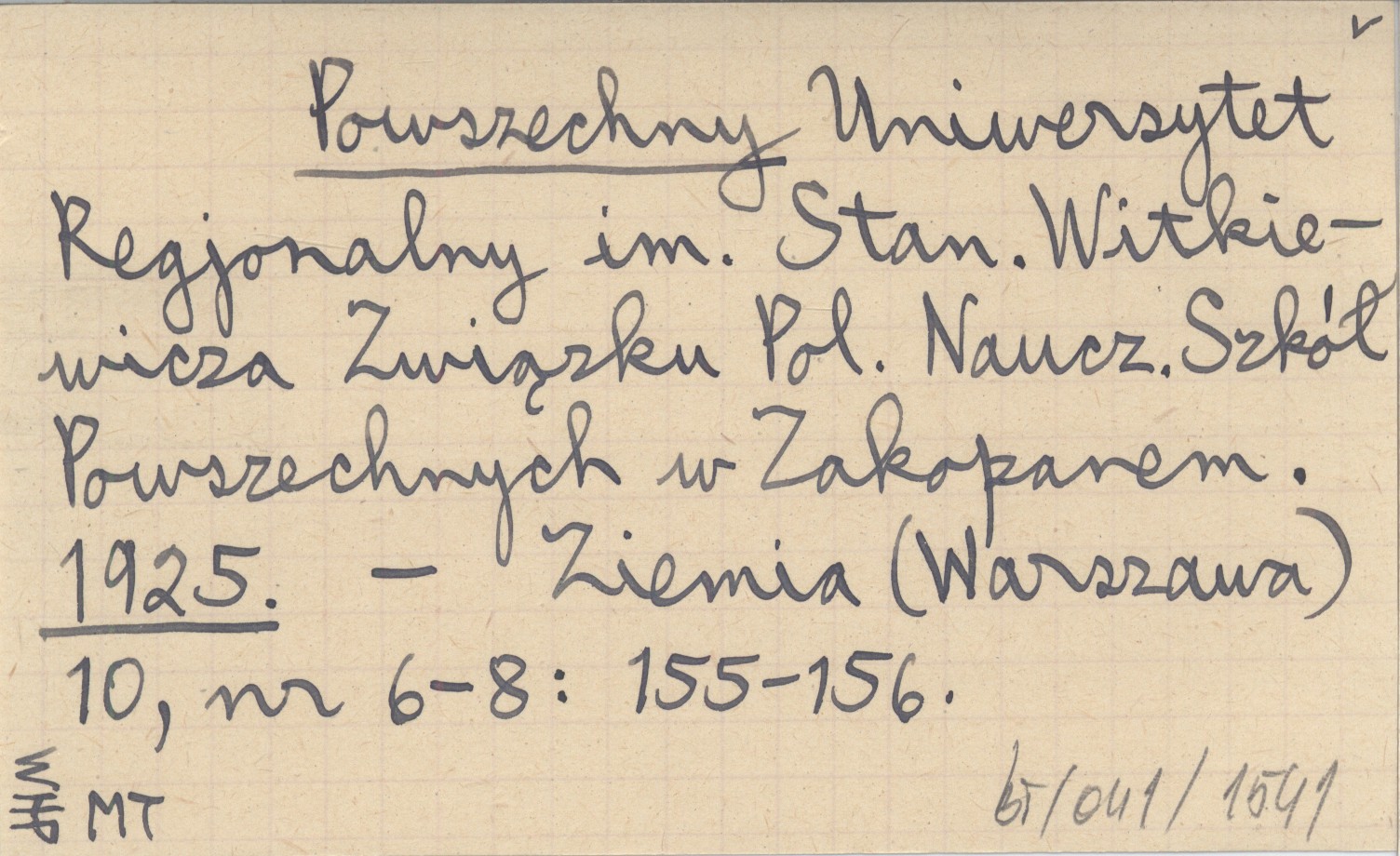 Powszechny Uniwersytet Regjonalny im. Stan. Witkiewicza Związku Pol. Naucz. Szkół Powszechnych w Zakopanem. 1925