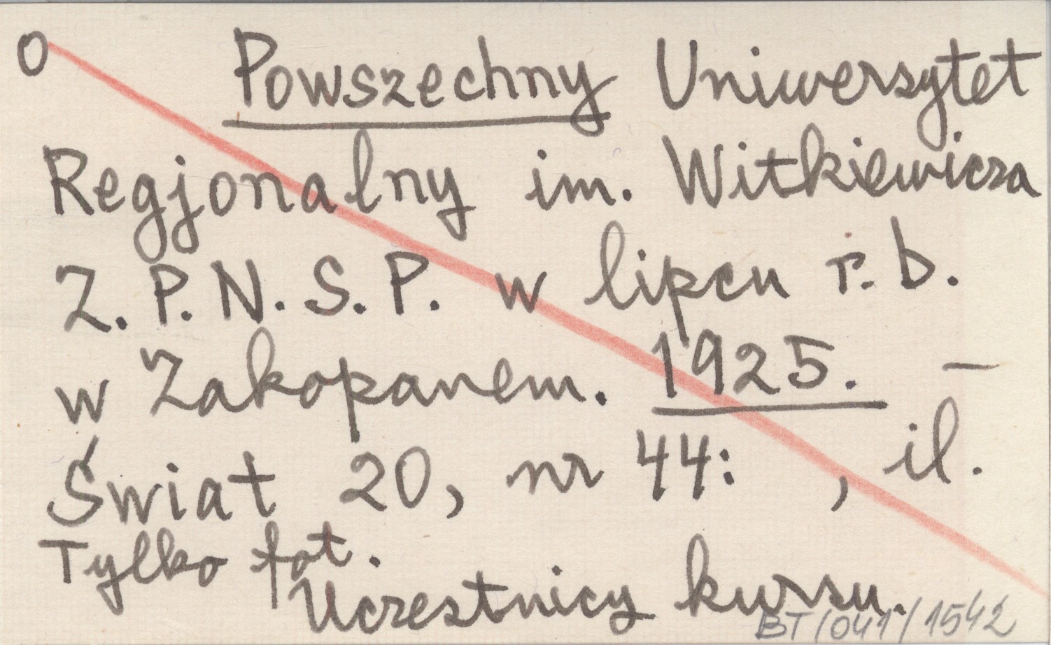 Powszechny Uniwersytet Regjonalny im. Witkiewicza Z.P.N.S.P. w lipcu r.b. w Zakopanem. 1925
