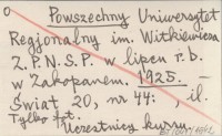 Powszechny Uniwersytet Regjonalny im. Stan. Witkiewicza Związku Pol. Naucz. Szkół Powszechnych w Zakopanem. 1925