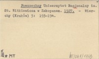 Powszechny Uniwersytet Regjonalny im. St. Witkiewicza w Zakopanem. 1927