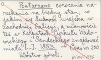 Powtarzane corocznie narzekania na biedny stan, w jakim się ludność wiejska w zachodniej Galicyi, a mianowicie też w Karpatach Cyrkułu Wadowickiego i Sandeckiego znajdować miała [...]. 1853