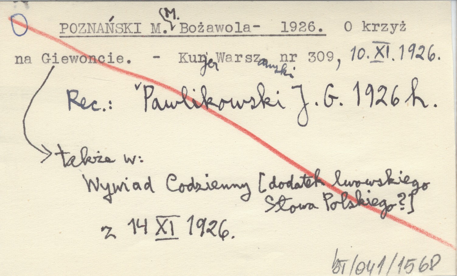 Kurjer Warszawski, Nr 309 (10 XI 1926). Także w: Wywiad Codzienny [dodatek lwowskiego Słowa Polskiego?] z 14 XI 1926. REC: PAWLIKOWSKI J. G. 1926 h