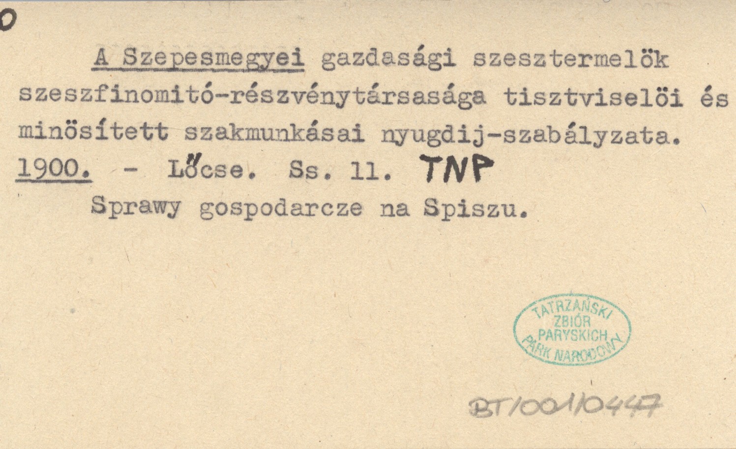 A Szepesmegyei gazdasági szesztermelök szeszfinomitó-részvénytársasága tisztviselöi és minösített szakmunkásai nyugdij-szabályzata. 1900