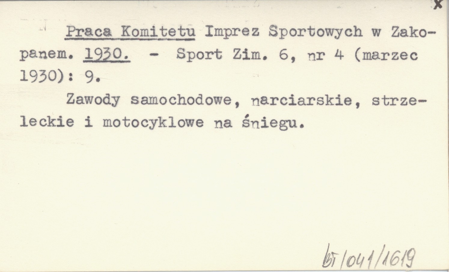 Praca Komitetu Imprez Sportowych w Zakopanem. 1930