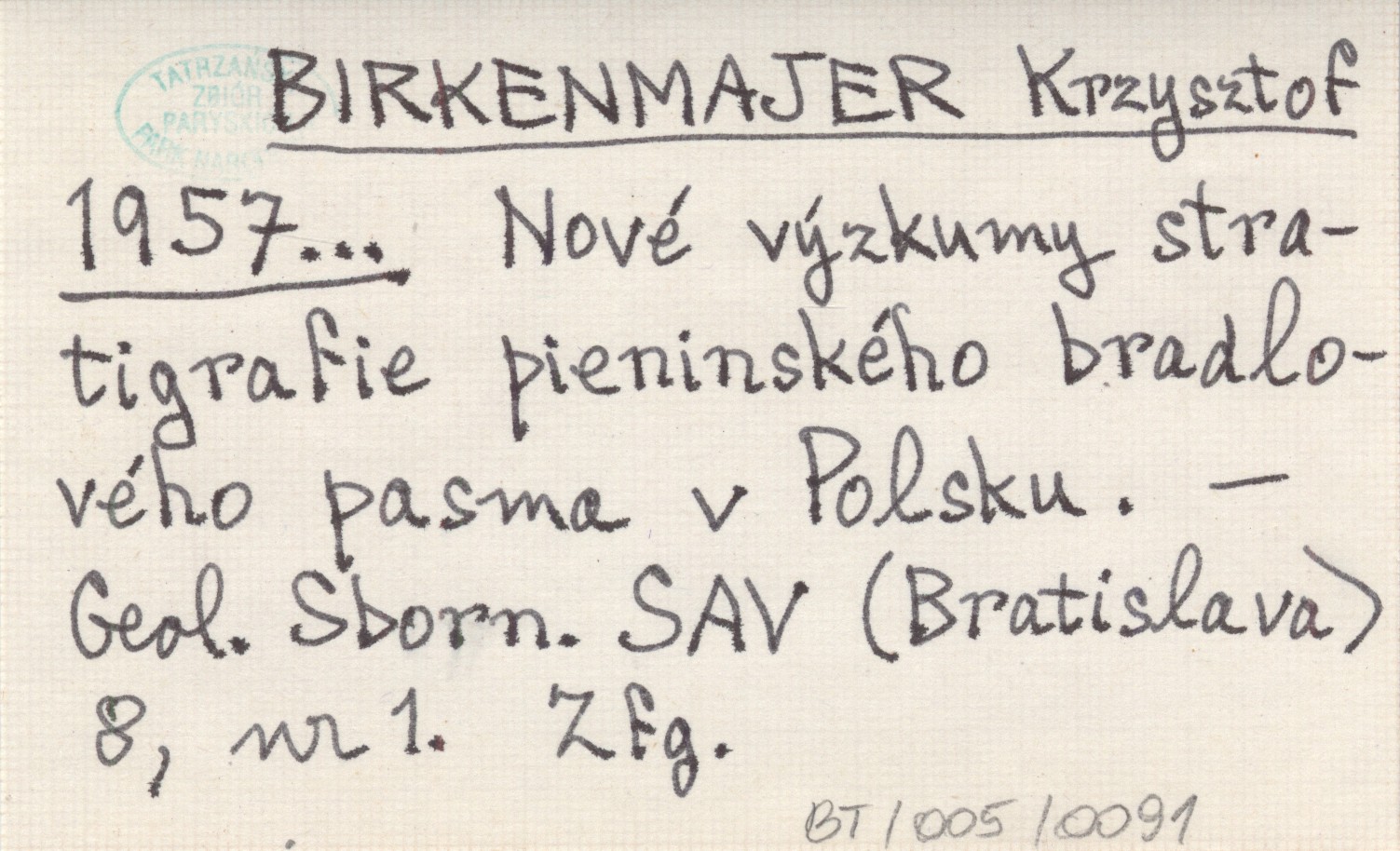 BIRKENMAJER Krzysztof 1957... Nové výzkumy stratigrafie pieninského bradlovéh pasma v Polsku.