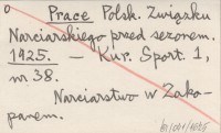 Prace Polsk. Związku Narciarskiego przed sezonem. 1925