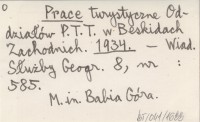Prace turystyczne Oddziałów P.T.T. w Beskidach Zachodnich. 1934