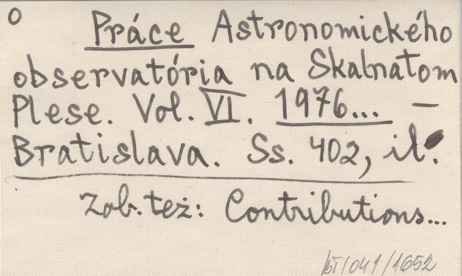 Práce Astronomického observatória na Skalnatom Plese. Vol. VI. 1976...