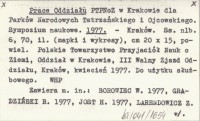 Prace Oddziału PTPNoZ w Krakowie dla Parków Narodowych Tatrzańskich i Ojcowskiego. Sympozium naukowe. 1977