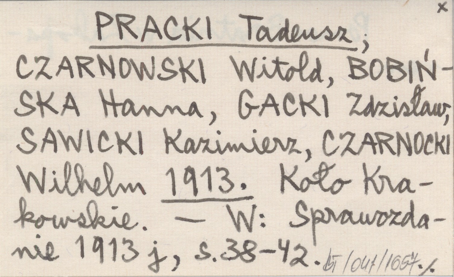 PRACKI Tadeusz CZARNOWSKI, Witold. ; BOBIŃSKA, Hanna. ; GACKI, Zdzisław. ; SAWICKI, Kazimierz. ; CZARNOCKI, Wilhelm. ; 1913 Koło Krakowskie.