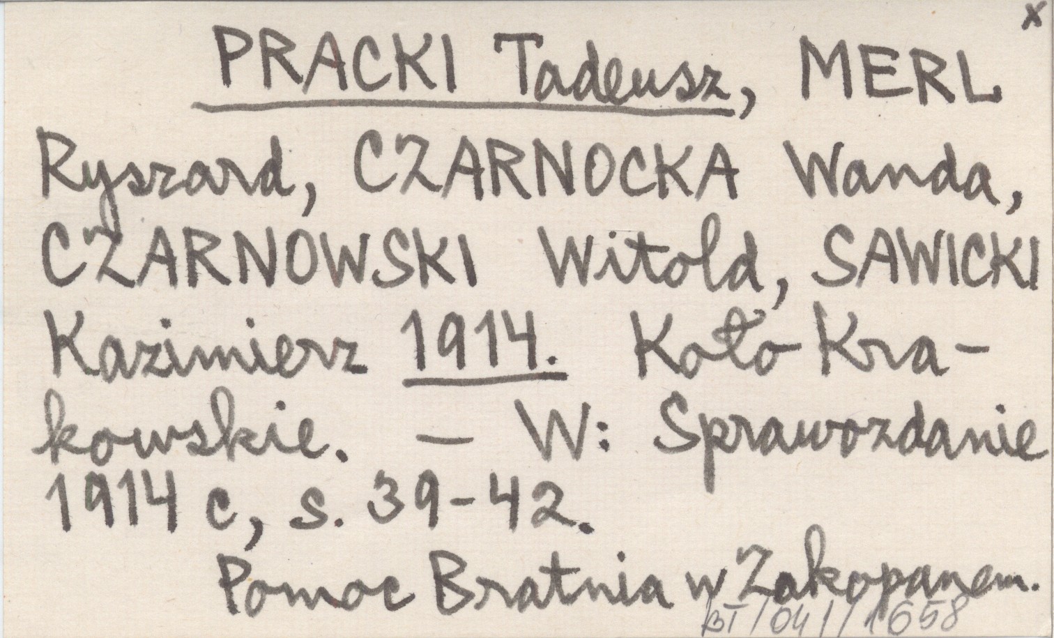 PRACKI Tadeusz MERL, Ryszard. ; CZARNOCKA, Wanda. ; CZARNOWSKI, Witold. ; SAWICKI, Kazimierz. ; 1914 Koło Krakowskie.