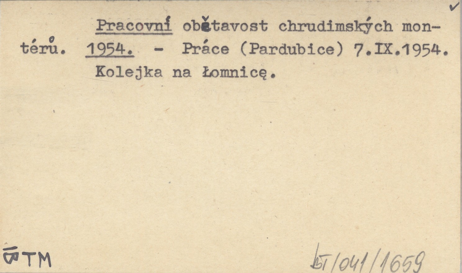 Práce (Pardubice) , 7 IX 1954. Kolejka na Łomnicę.