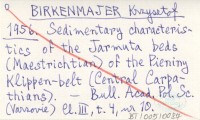 BIRKENMAJER Krzysztof 1956 Sedimentary characteristics of the Jarmuta beds (Maestrichtian) of the Pieniny Klippen-belt (Central Carpathians).