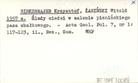 BIRKENMAJER Krzysztof ŻABIŃSKI, Witold. ; 1957 a Ślady miedzi w aalenie pienińskiego pasa skałkowego.