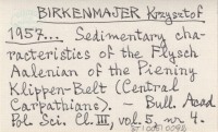 BIRKENMAJER Krzysztof 1957... Sedimentary characteristics of the Flysch Aalenian of the Pieniny Klippen-Belt (Central Carpathians).