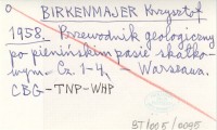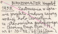 BIRKENMAJER Krzysztof 1958 Zastrzeżenia w sprawie projektu budowy zapory wodnej koło Czorsztyna ze stanowiska geologicznego.