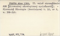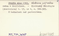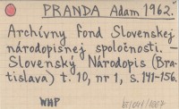 PRANDA Adam 1962 Archívny fond Slovenskej národopisnej spoločnosti.