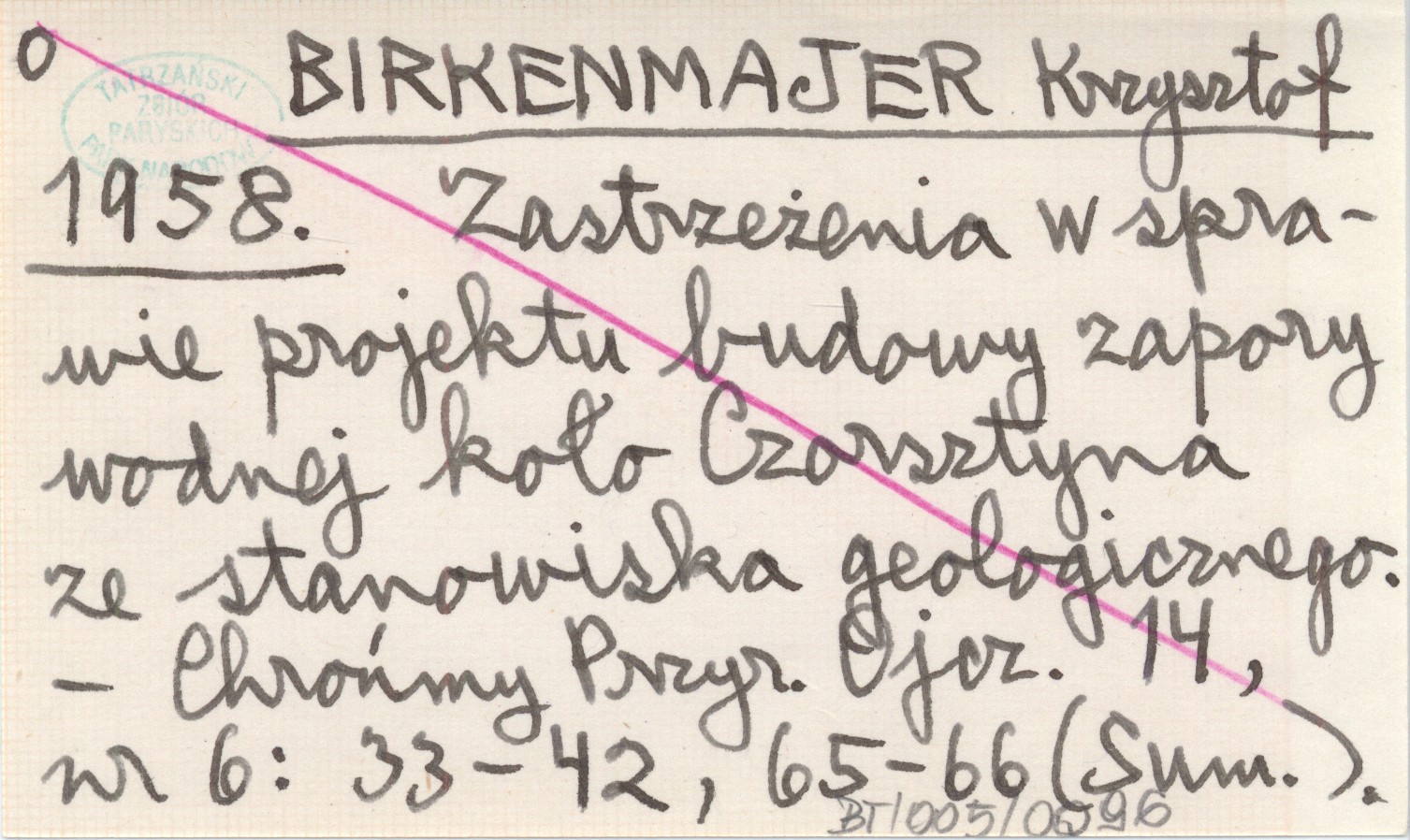 BIRKENMAJER Krzysztof 1958 Zastrzeżenia w sprawie projektu budowy zapory wodnej koło Czorsztyna ze stanowiska geologicznego.