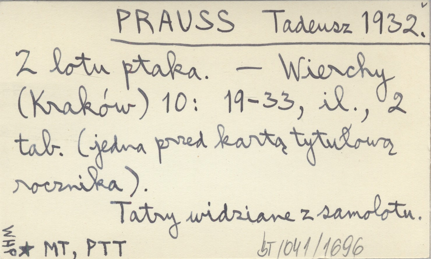 Wierchy (Kraków) , 10: 19-33, il., 2 k. Tatry widziane z samolotu.