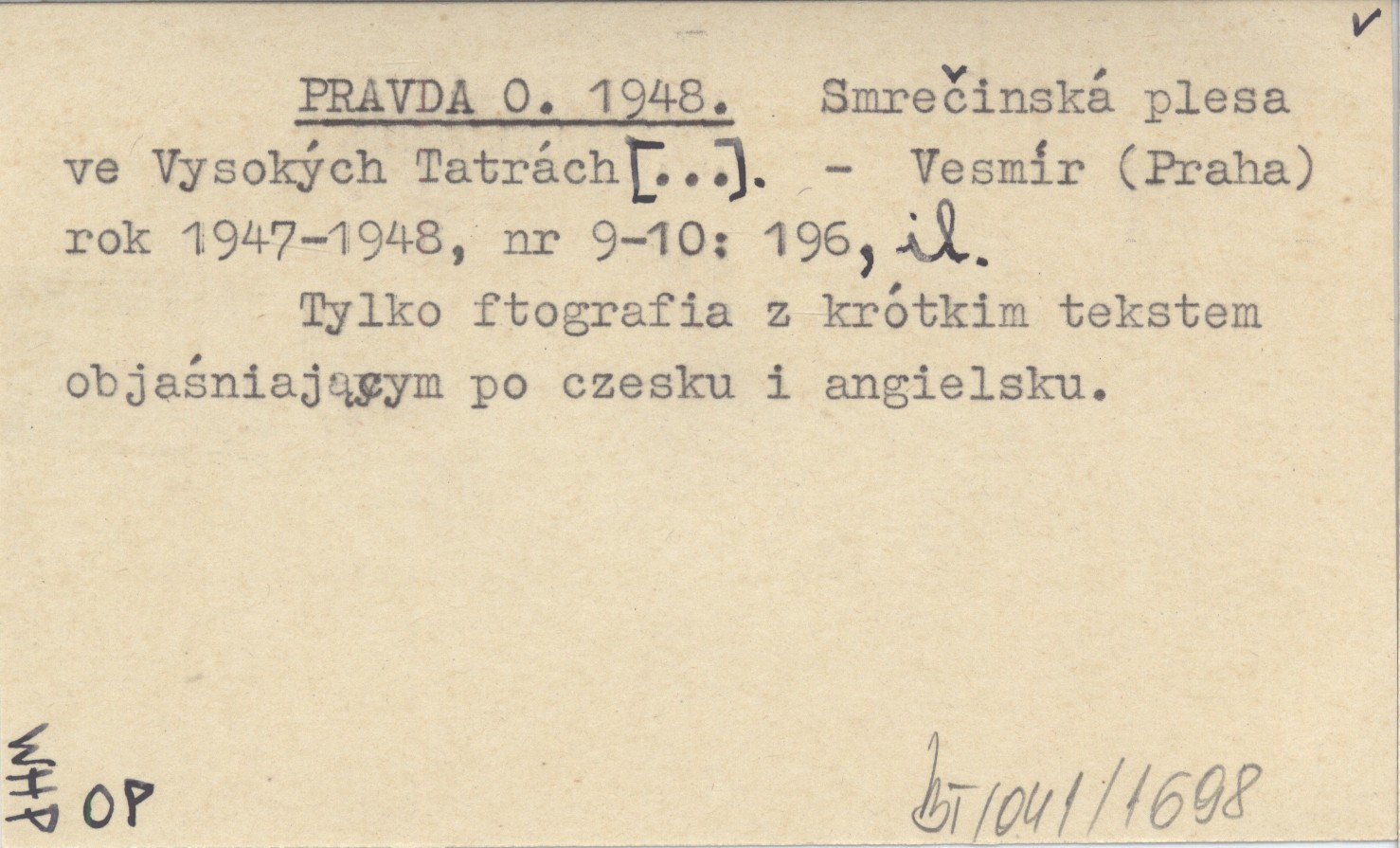 PRAVDA O. 1948 Smrečinská plesa ve Vysokých Tatrách [...].